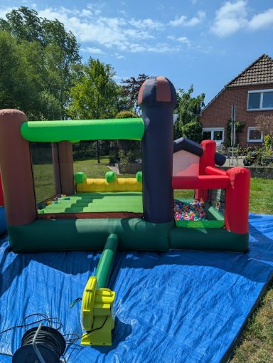 Im Mietpreis inbegriffen: 1 Hüpfburg, 1 Lüfter, 1 Unterlegplane, auf Wunsch Bälle und/oder Wasserschlauch, Endreinigung
