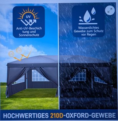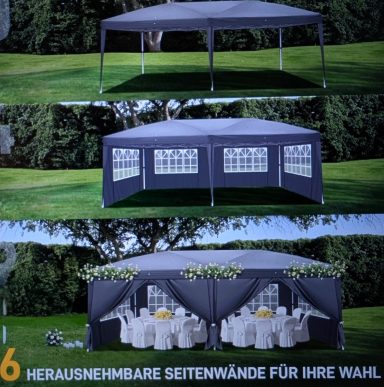 Faltpavillion/ Gartenzelt 3x6 Meter Wasserdicht mit Seitenwänden und Fenster, leichter Aufbau.